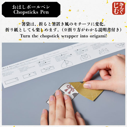 「日本」らしさを感じられるデザインの文房具シリーズ「Japan Design Collection」が登場。「おはしボールペン/Chopsticks Pen」は割り箸をモチーフにしたボールペン。日本の食文化を表現したユニークな見た目が特長で、箸袋では折り紙が楽しめます。【検索ハッシュタグ】#Japan Design Collection#JAPAN#japan#souvenir#stationary#Ninja#Mt. Fuji#Sushi#Sakura#お土産#日本土産#日本#JAPAN#日本デザイン#おはし#箸#ボールペン#筆記具#おはしボールペン#お箸ペン#おもしろ#割り箸#箸袋#箸置き#箸置#折り紙#origami#富士山#舞妓#着物#船#舟#兜#かぶと#鶴#折り鶴