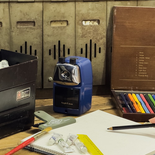 レトロな佇まい、クラシカルな風格。スチール製の鉛筆削り。