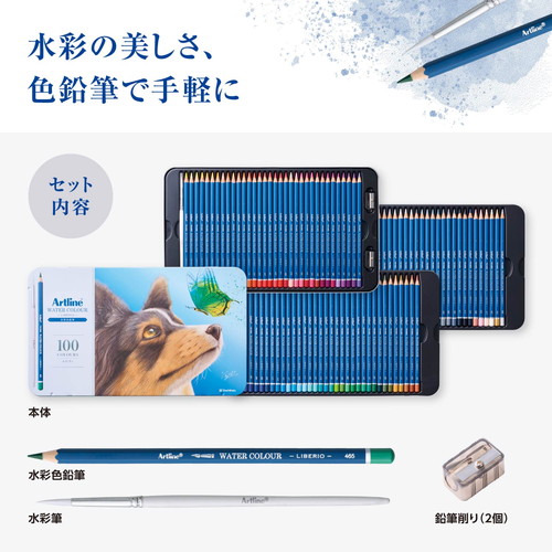 水で溶かすと水彩画のような表現ができる色鉛筆。色を重ねて描き、ぼかすと混色表現が可能です。水を含んだ筆で色鉛筆の芯を溶かし、指で弾いてしぶきを飛ばすスパッタリングで躍動感を出すなど様々な表現が得られます。持ちやすく転がりにくい六角形状を採用。【検索ハッシュタグ】#