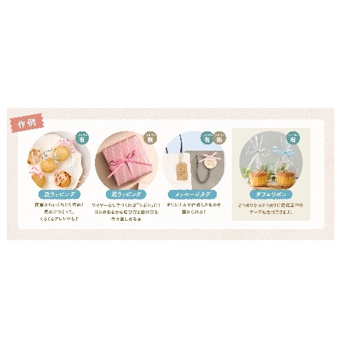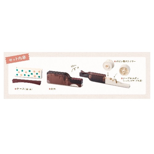 お手持ちのマスキングテープを簡単キレイに3つ折りして、お好みの長さでラッピングタイやリボンをつくれます。マスキングテープの先端を2つ折りにしてセットし引き出すだけで自動的に3つ折りになっていきます。専用のボビン巻きワイヤーをセットして一緒に3つ折りすることで、ラッピングタイをつくれます。ワイヤーなしで3つ折りすると、リボンになります。専用のボビン巻きワイヤーは樹脂製(材質PE)なのでハサミで簡単にカットできます。別売のボビン巻きワイヤーでくり返し使えます。※マスキングテープは付属していません。
