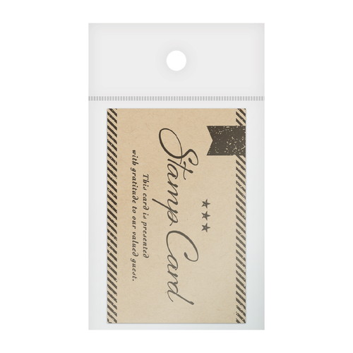 リピーター獲得に最適なスタンプカードです。飲食店やサロン、各種店舗で使いやすいデザインで、販促ツールとして幅広く活用できます。クラフトの厚手用紙で扱いやすく、集客力アップに貢献します。スタンプスペース20マス。