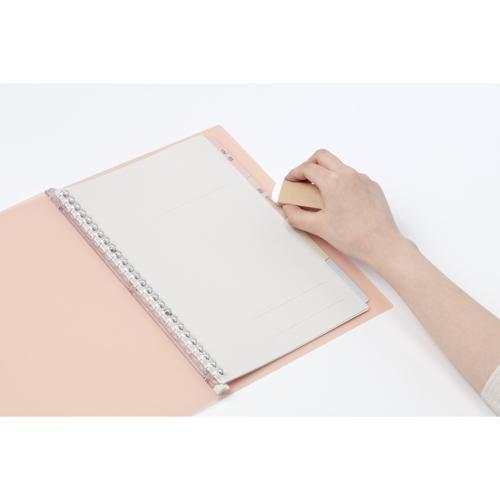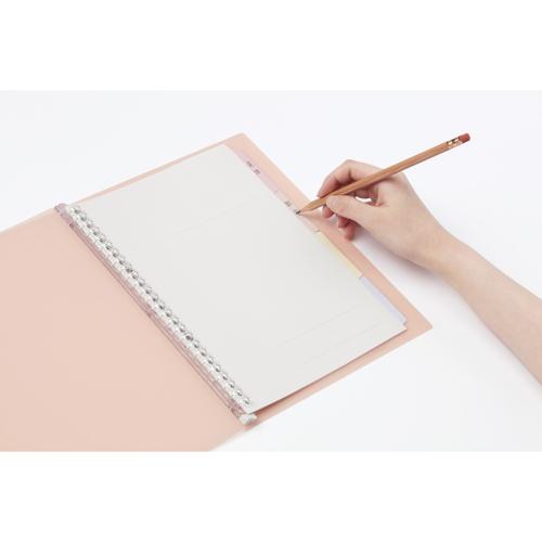 くり返し使える!シャープペンやえんぴつで書いて、消しゴムで消せるインデックス付のスリムバインダー。 パステルでかわいいクリアカラーのデザインと、落ち着いたマットなカラーのデザインから選べます。 背幅がスリムなので、持ち歩きにも適しています。 ●POINT①:教科などをタブに書きこむことで、見返したいページをサッと開ける!    ・学生の使用率が高い「シャープペン」。     ふだん使っている筆記具で、そのままインデックスに項目を書き込むことができて便利。    ・また、表紙をカットしダイレクトにタブをおさえてサッと開けるよう、工夫しました。 ●POINT②:タブ部分にはラミネート加工を施しており、丈夫でずっとキレイ!    ・長期間の使用や、くりかえしめくっても安心な、丈夫なインデックスです。 ●POINT③:好みに合わせて、選べるデザイン    【「パステルでかわいいクリアカラー」の表紙】    チェック柄の入ったやさしい色合いのインデックスは、かわいいカラーの表紙ともカラーコーディネートしています。    学生の方におススメ!