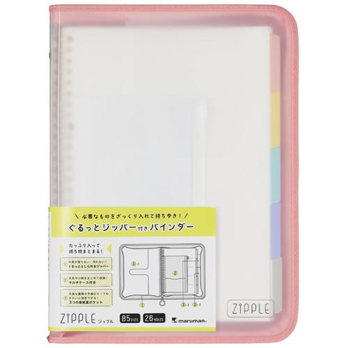 たっぷり入って、持ち物まとまる、ジッパー付きのバインダーが新登場! 通学バッグの整理や、教室移動時など、ちょっとした荷物の持ち出しを快適にするバインダーです。 表紙ポケットにお気に入りのグラフィックを入れたり、ジッパーの引手にチャームを付ければ 自分らしく楽しく使える1冊に! ●POINT①:中身が落ちない、汚れない!ぐるっととじられるジッパー付き ・教室移動の際など、急いでいてもジッパーをとじていれば中身を落とさず安心。 ルーズリーフやプリントも、とりあえず 投げ込んでおけるため、あとからゆっくり整理することができて便利。 ・ジッパーには指をかけられて引っ張りやすい円形の引手を採用。 お気に入りのチャームなどを付けることも可能です。 ●POINT②:文具や小物をまとめて収納!マルチケース付き ・筆記具など文具が収納できるファスナー付のマルチケースが1個ついてくる! ・外側にはふせんやUSBなどをきれいに保管できる、小さなポケットも。 ・リップや目薬など、身の回り品も入れても◎ ●POINT③:大事な書類や予備のリーフもきれいに保管できる!3つの表紙裏ポケット 表2…サイドインポケット。お気に入りのグラフィックを入れて、カスタマイズしても◎。 表3…プリントなどの仕分けもできる大小2枚のポケット。【検索ハッシュタグ】#マルマン#バインダー#ファスナー付きバインダー#ジップル#勉強ツール#ポーチ#バッグインバッグ#ZIPPLE#maruman