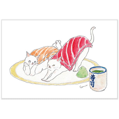 イラストレータートコロコムギが描く、ゆるくてちょっぴりあやしいにゃんこたちのポストカードです。