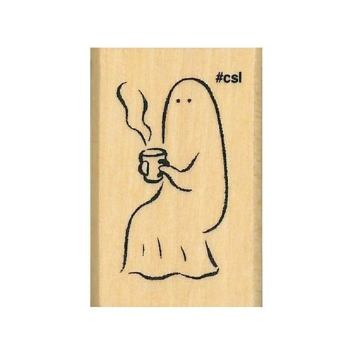 いろんなモチーフをいろんな絵柄でスタンプにした、木製ラバースタンプのシリーズです。ティータイム中のおばけ柄