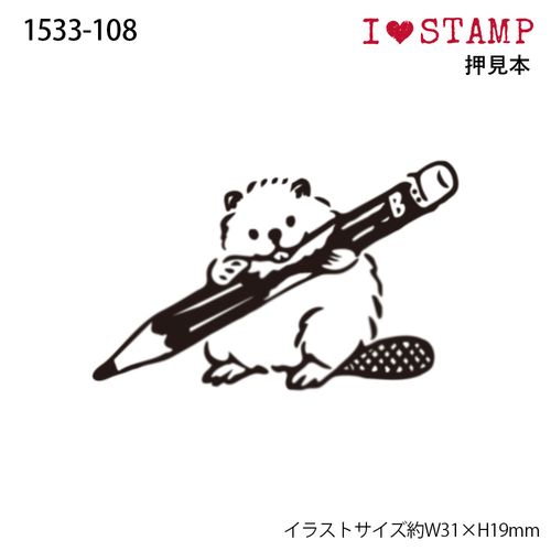 鉛筆を齧っちゃってるビーバーのイラストが、なんともキュートで思わず笑顔になれるスタンプです。