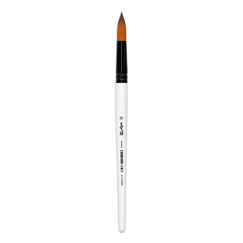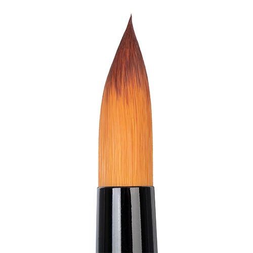 穂先が細い丸型の「ラウンド(丸)」。筆圧によって細い線から太い線まで描くことができるスタンダードな筆です。柔らかなナイロン毛は穂先のまとまりが良く、水含みも良いため、にじみやぼかしなど、さまざまな技法にて使用可能です。【検索ハッシュタグ】#筆#水彩#ラウンド
