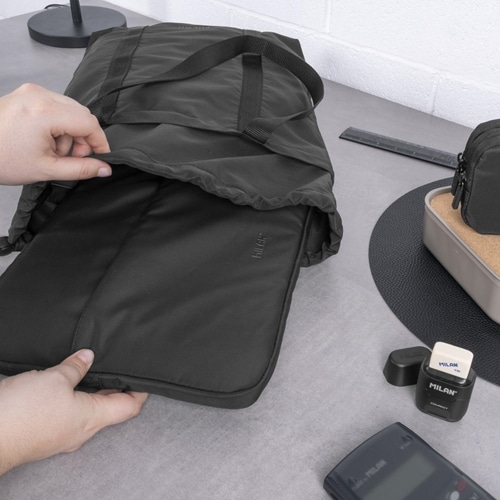 スペインの文具メーカーMILAN(ミラン)の、トートバッグです。軽量で普段使いやショッピングに最適です。ドローストリング開閉,。柔らかく、わずかに光沢のある生地。ブラックのマットロゴが付いています。落ち着いた雰囲気とタイムレスな個性を演出するブラックを基調としたデザインの「Shadow」シリーズ。【仕様】[持ち手]約635mm[容量]約5リットル【注意】海外メーカー商品のためパッケージのデザインが予告なく変更になる場合がございます。【MILANについて】1918年創業のスペインの老舗文具メーカー「MILAN(ミラン)」は、消しゴムの生産から事業を始め、現在では文具や雑貨の世界的メーカーとして国際的な地位を確立しています。デザイン性の高いミランの商品は時代を超えて世界中のファンから愛されています。