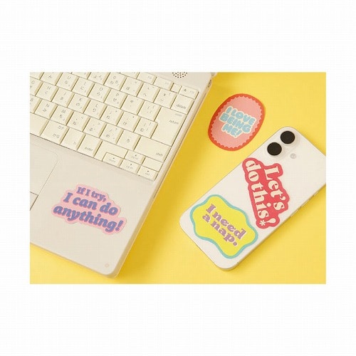 自分を励ましたり、息抜きしたくなる 4種のメッセージステッカー。 耐水・耐光加工を施しているので、 スマホやノートパソコンなど身の回りの 色々なアイテムに貼ることができます。