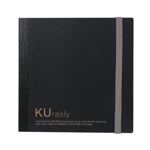 スクエアノートの表紙と裏表紙には、環境に配慮した風合い豊かな国産再生板紙を採用。スマートなフォルムと、上質な使い心地が魅力です。 角には2mmの角丸加工を施し、角潰れ防止とスマートさを両立させました。本文用紙は、裏透けしにくく、目に優しい国産クリーム上質紙です。 アイデア整理から日記、仕事のメモまで使いやすい5mm方眼を採用しました。方眼罫は、細めのラインと素材になじむ配色によって書き手の自由度を追求したデザインです。 ゴムバンドの留め具は右上一か所に減らし、書きやすさを追求した設計にしました。PC前においても場所を取らず、限られたデスクスペースでも作業を妨げません。【検索ハッシュタグ】#包む#Kurasly#ノート#スクエア#スクエアノート#環境配慮#高級感#国産#糸かがり綴じ#透けにくい#5mm方眼#角丸#ブラック