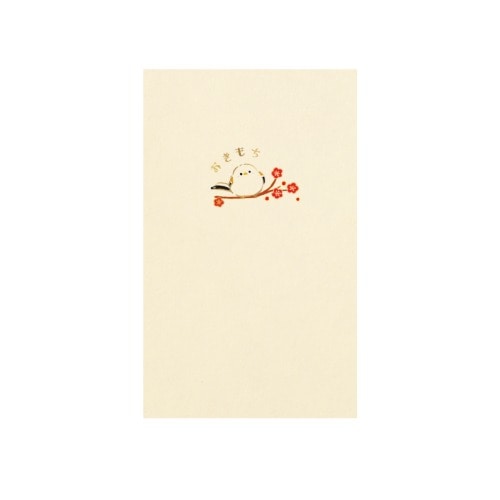 梅の枝に止まったシマエナガが可愛いワンポイントの絵柄を金箔押し加工で、ちょっとした心づかいをお渡しする際に気軽にお使いいただけます。 やさしい風合いの「伊予和紙」を使用しています。三つ折りのお札を入れることができます。プリペイドカードなどをプレゼントとして贈る際にもおすすめです。