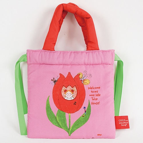 優しいさわり心地の中綿入り巾着ポーチ。ふかふかの持ち手とビビットカラーのリボンがかわいいポイント!ガジェットアイテムなどを入れるのにもぴったりです。持ち手サイズ:W23?L220mm 柄:チューリップ