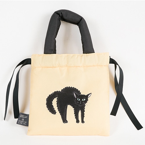キャットアンドシリーズのかわいいネコのイラストがキャッチーな優しいさわり心地の中綿入り巾着ポーチ