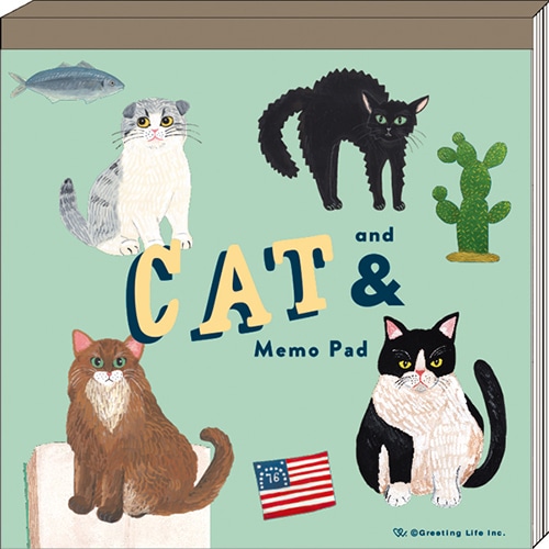 キャットアンドのイラストがかわいい中面4柄入の色々なシチュエーションに使用できるメモ帳