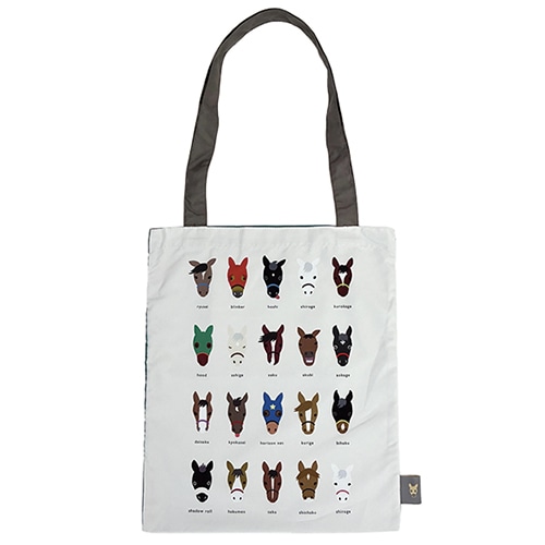 KEIBA柄のイラストが目を引く大判トートバッグ。裏表で異なるデザイン、カラーが楽しめます。内側にはポケット付。持ち手サイズ:W25×L620mm