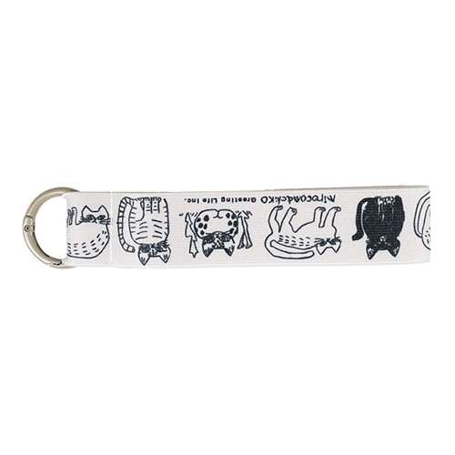 丸カンタイプのカラビナなので、スマホ・鍵・キーホルダー、色々なリングにつけて持ち歩けるストラップチャーム。着脱可能なホックでカバンの持ち手などにもつけられます。バンド部分にもしっかり絵柄がほどこされていたので、アクセント、ファッションにもなります。カラビナ色:グレー 柄:ミロコマチコ ねこ