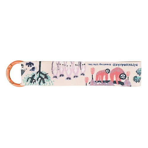 丸カンタイプのカラビナなので、スマホ・鍵・キーホルダー、色々なリングにつけて持ち歩けるストラップチャーム。着脱可能なホックでカバンの持ち手などにもつけられます。バンド部分にもしっかり絵柄がほどこされていたので、アクセント、ファッションにもなります。カラビナ色:オレンジ 柄:ミロコマチコ アニマル