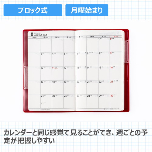 #高橋書店(日本国内のみ) 手帳 2026年 ウィークリー ティーズミニ 4 レッド No.150 (2025年 11月始まり)