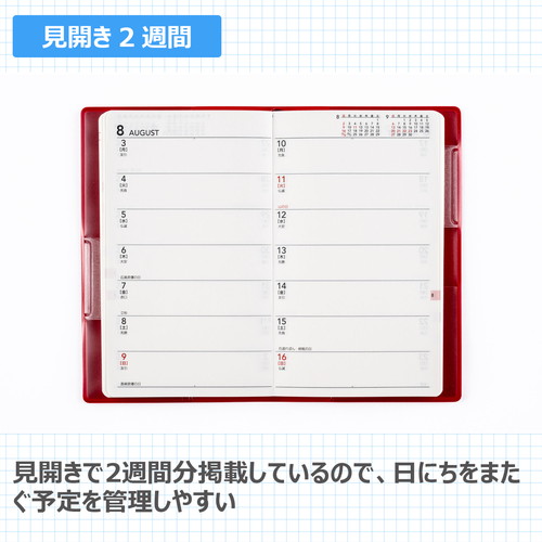 コンパクトがらも機能性バツグン!小さいサイズでも、付録内容が充実したシリーズ。6色のさまざまな記入形式から選べます。