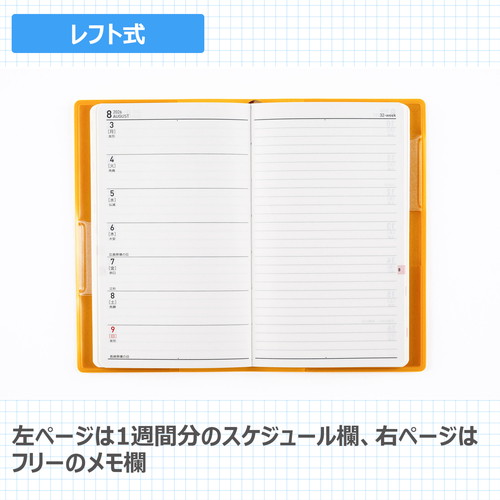 コンパクトがらも機能性バツグン!小さいサイズでも、付録内容が充実したシリーズ。6色のさまざまな記入形式から選べます。