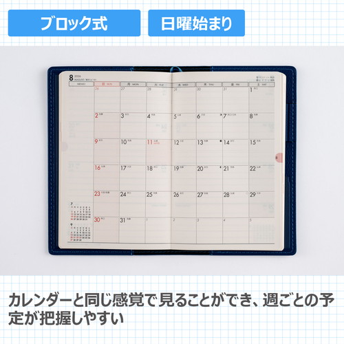 シンプルで機能性抜群!毎年のトレンドカラーから、試行を重ねたカバーデザイン。質感にもこだわり抜いています。※日曜始まり