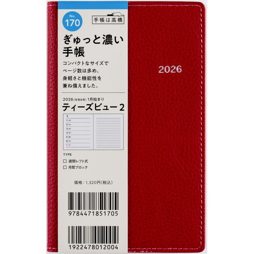 #高橋書店(日本国内のみ) 手帳 2026年 ウィークリー ティーズビュー 2 レッド No.170 (2025年 12月始まり)