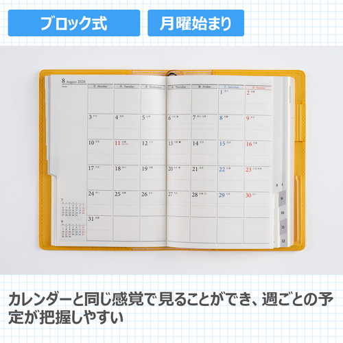 #高橋書店(日本国内のみ) 手帳 2026年 A6 ウィークリー リシェル 4 サンフラワーイエロー No.214 (2026年 1月始まり)