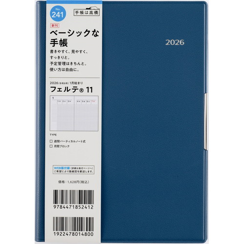 #高橋書店(日本国内のみ) 手帳 2026年 B6 ウィークリー フェルテ 11 ダルブルー No.241 (2025年 12月始まり)