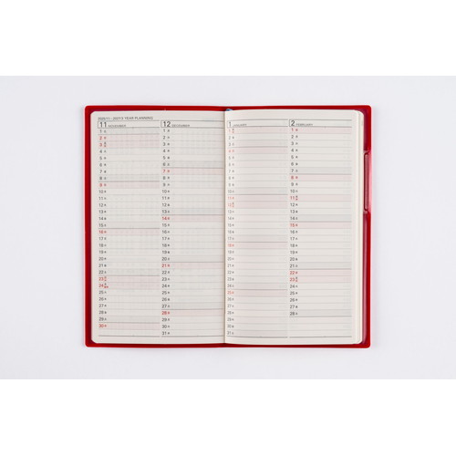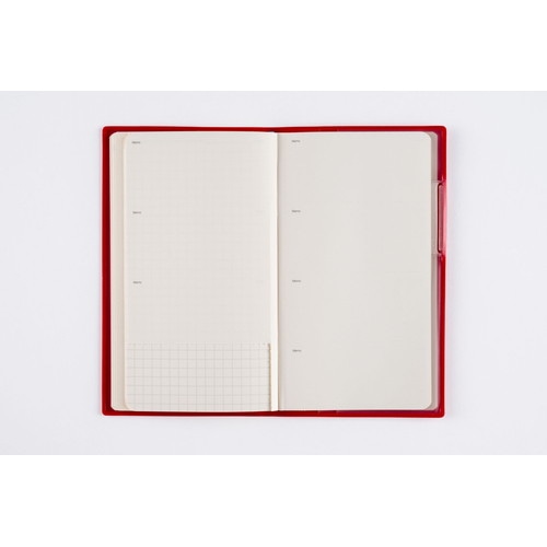 「見開き1ヵ月+メモ」のシンプルさが人気!カレンダーと同じで見やすい日曜始まり、土日均等タイプです。