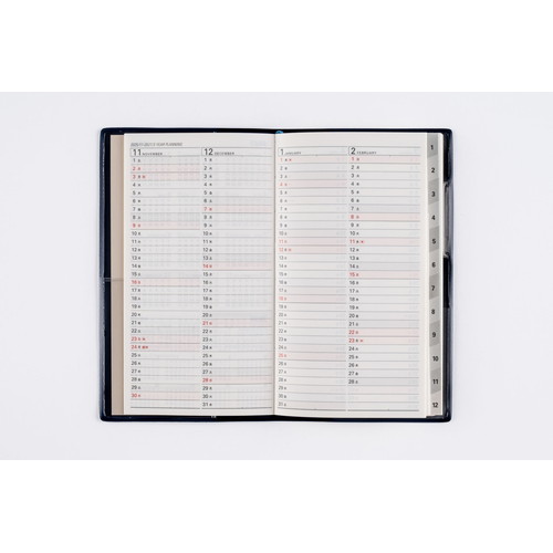 「見開き1ヵ月+メモ」のシンプルさが人気!「薄さ」と「軽さ」が人気の土日均等タイプ。一冊目にはもちろん、趣味やプライベートなどサブ手帳としてもオススメです。