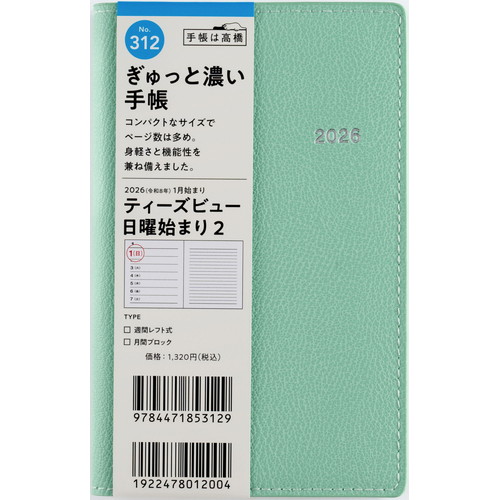 #高橋書店(日本国内のみ) 手帳 2026年 ウィークリー ティーズビュー 2 セイジグリーン No.312 (2025年 12月始まり)
