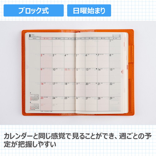 シンプルで機能性抜群!毎年のトレンドカラーから、試行を重ねたカバーデザイン。質感にもこだわり抜いています。※日曜始まり
