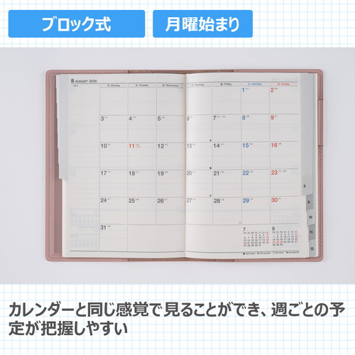 高橋書店で一番人気のB6判シリーズ。高級感あふれる、シックなカバーデザインは、ビジネスシーンはもちろん、プライベートでも違和感なく持ち歩けます。女性に人気の柔らかなベージュカラーです。