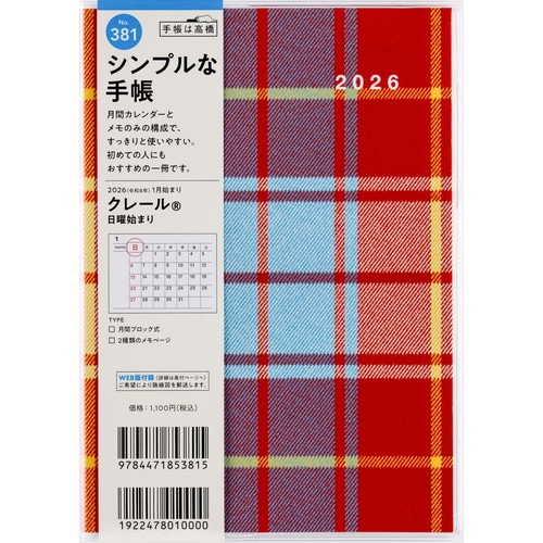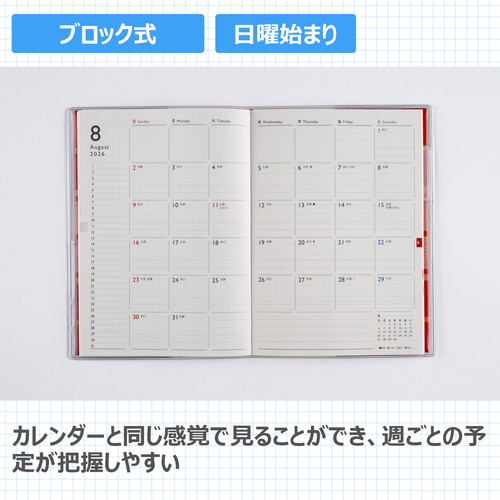 持っていてかわいいチェック柄月ごとに横ケイメモと方眼メモが入っています。