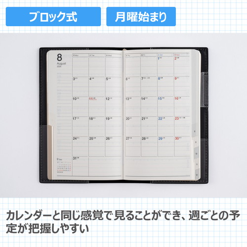 高級感あふれる、ビジネス手帳見たい月をすぐに開けるインデックス付きです。