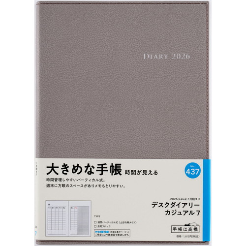 #高橋書店(日本国内のみ) 手帳 2026年 A5 ウィークリー デスクダイアリー カジュアル 7 ウォームグレー No.437 (2025年 12月始まり)