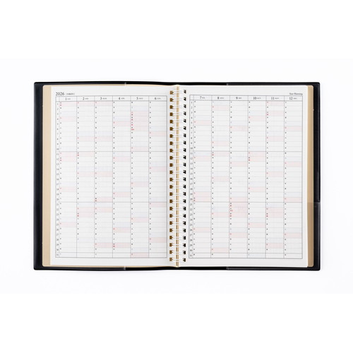 360度ページが開くダブルリング式ダイアリーページが開きやすい切り取りインデックス付きで、機能性に優れています。