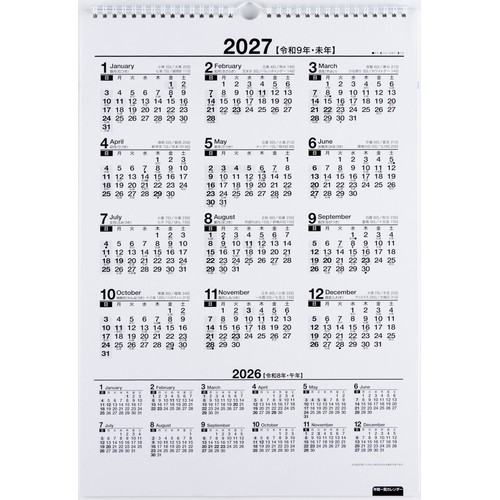ご自宅でもオフィスでもなじむ、シンプルなカレンダー。数字が大きく、遠くからでも見やすいデザインです。2年分を一覧できる年間カレンダーが付いているので、長期計画の立案もしっかりサポートしてくれます。