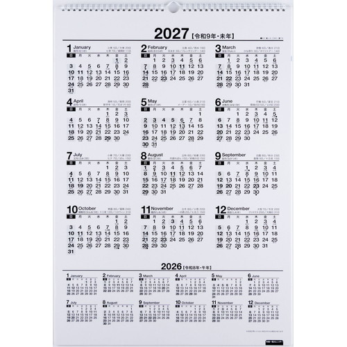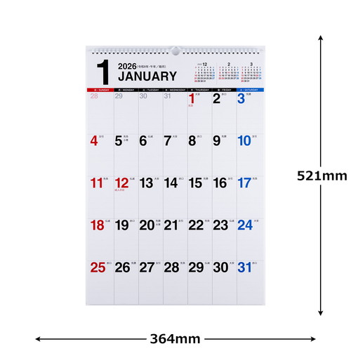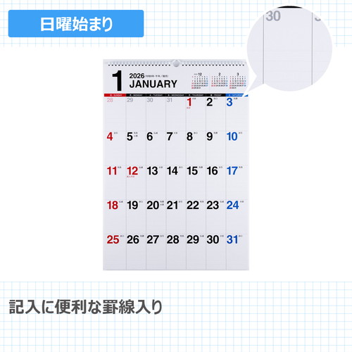 ご自宅でもオフィスでもなじむ、シンプルなカレンダー。数字が大きく、遠くからでも見やすいデザインです。2年分を一覧できる年間カレンダーが付いているので、長期計画の立案もしっかりサポートしてくれます。