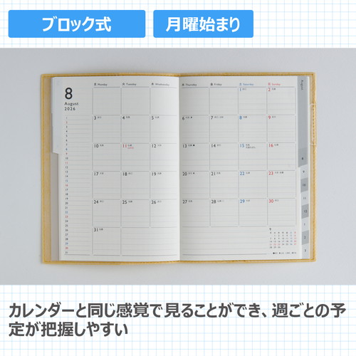 ビジネスシーンでも使いやすい皮革調タイプ。「2冊使い派」にも、「スマホと手帳併用派」にもオススメ。
