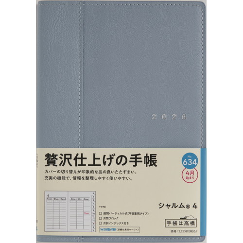 #高橋書店(国内販売のみ) 手帳 2026年 4月始まり B6 ウィークリー シャルム 4 スモーキーブルー No.634 #高橋書店(国内販売のみ) 手帳 2026年 4月始まり B6 ウィークリー シャルム 4 スモーキーブルー No.634