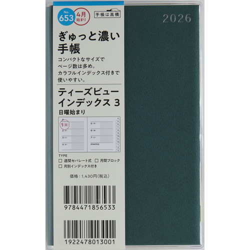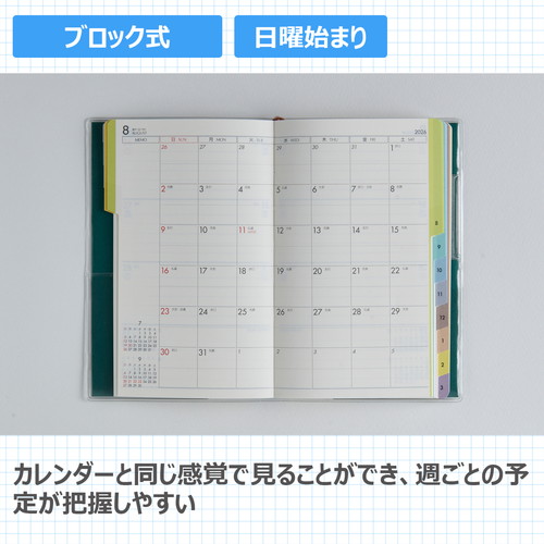 高級感あふれるカバー色。毎月新たな気分で過ごせるカラフルインデックス付き。