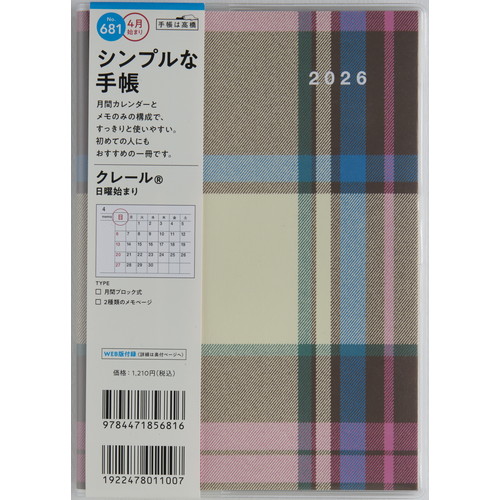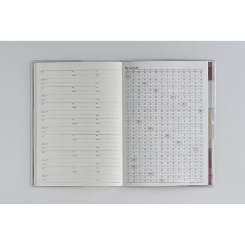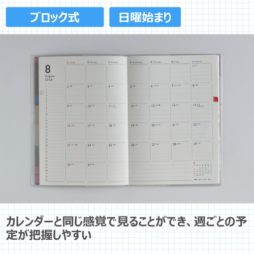 毎年変わるチェック柄。月ごとに横ケイメモと方眼メモが入っているので、メモの管理もしやすい。