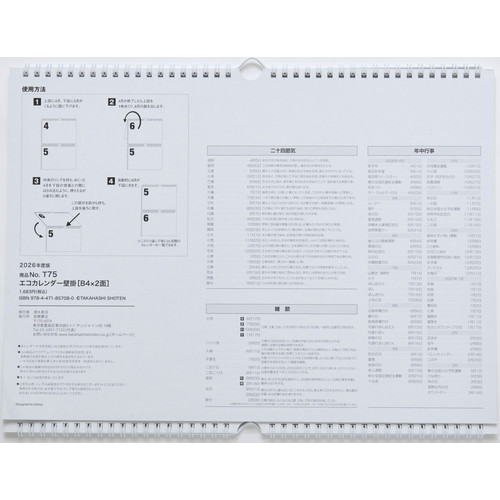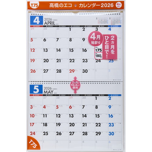 2ヵ月の予定を同時に見ることができるカレンダー。 上下の月の位置を入れ替えることができる優れものです。