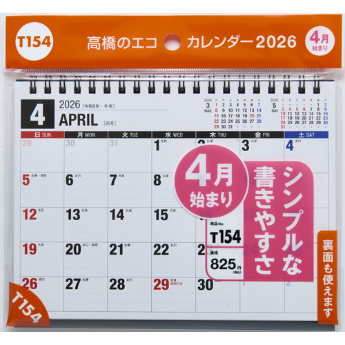 シンプルで使いやすい、人気No.1卓上カレンダー。 表と裏で2つのスケジュールを管理することができます。