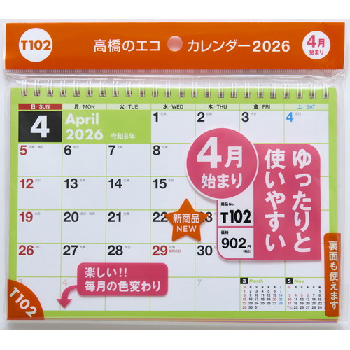 ポップでカラフルな卓上カレンダー。 月ごとに色が変わるので、めくるたびに気分を一新できます。