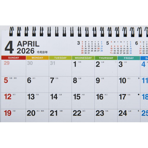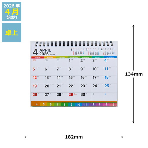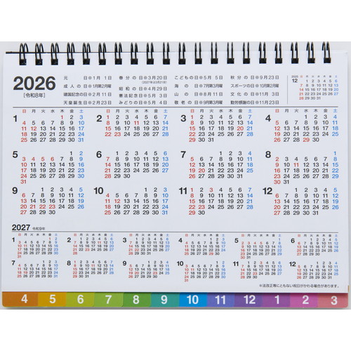 ポップな色使いのカラフルカレンダー。 見たい月を素早くめくれるカラフルインデックス付き。