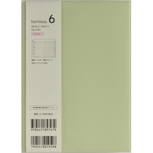#高橋書店(国内販売のみ) 手帳 2026年 4月始まり マンスリー torinco 3 ソフトグレー No.731