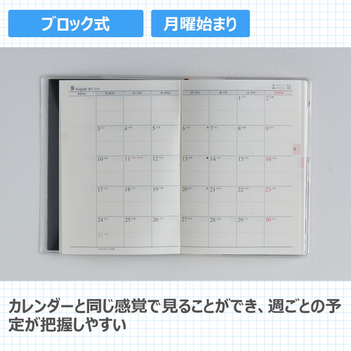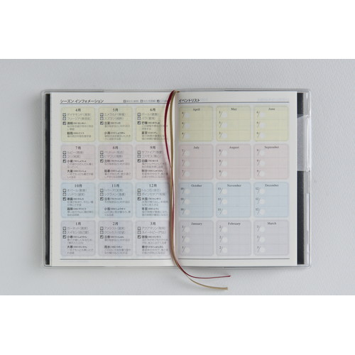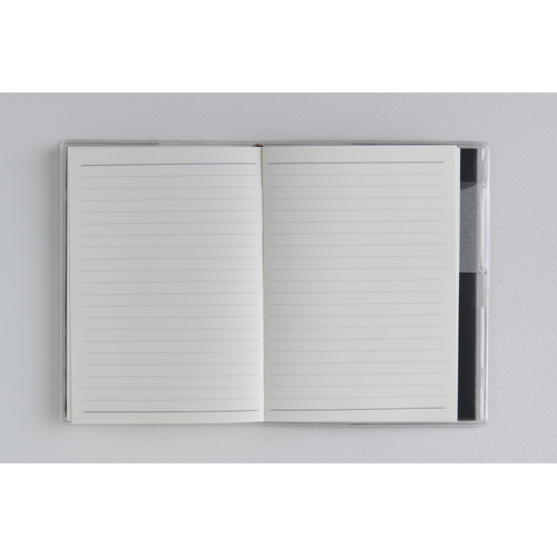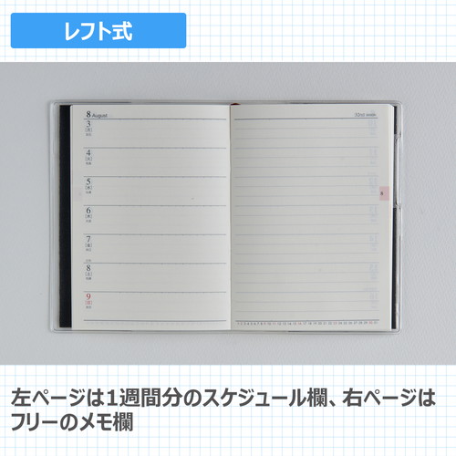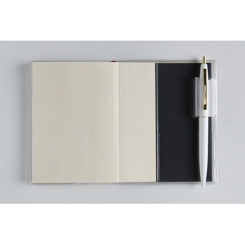 素材感のあるカバーに大きめのロゴがポイント。ベーシックな2つの記入形式。
