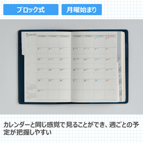 #高橋書店(国内販売のみ) 手帳 2026年 4月始まり マンスリー リベルデュオ 7 フォギー ライトブルー No.797